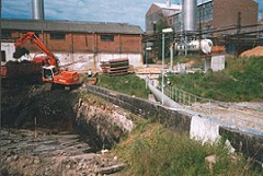 | Betonieren der Stützwände und | Einbau der Bodenplatte aus Asphalt |