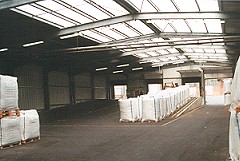 | Stellen der Stahlskelettkonstruktion | Fertiggestellte Lagerhalle mit Sandwich- |